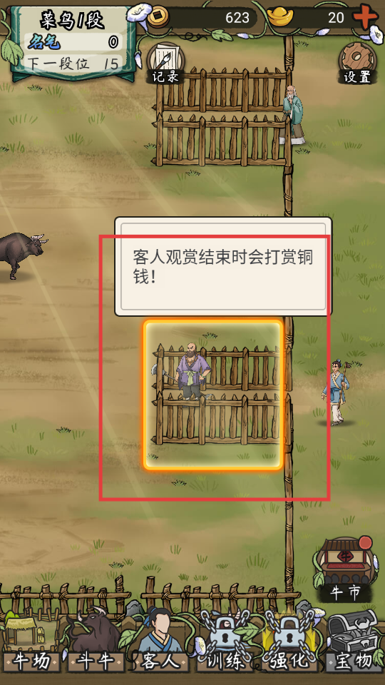 2、接待客人观赏,客人结束观赏后会打赏铜钱,通过此方式获取收益,推进游戏进程。