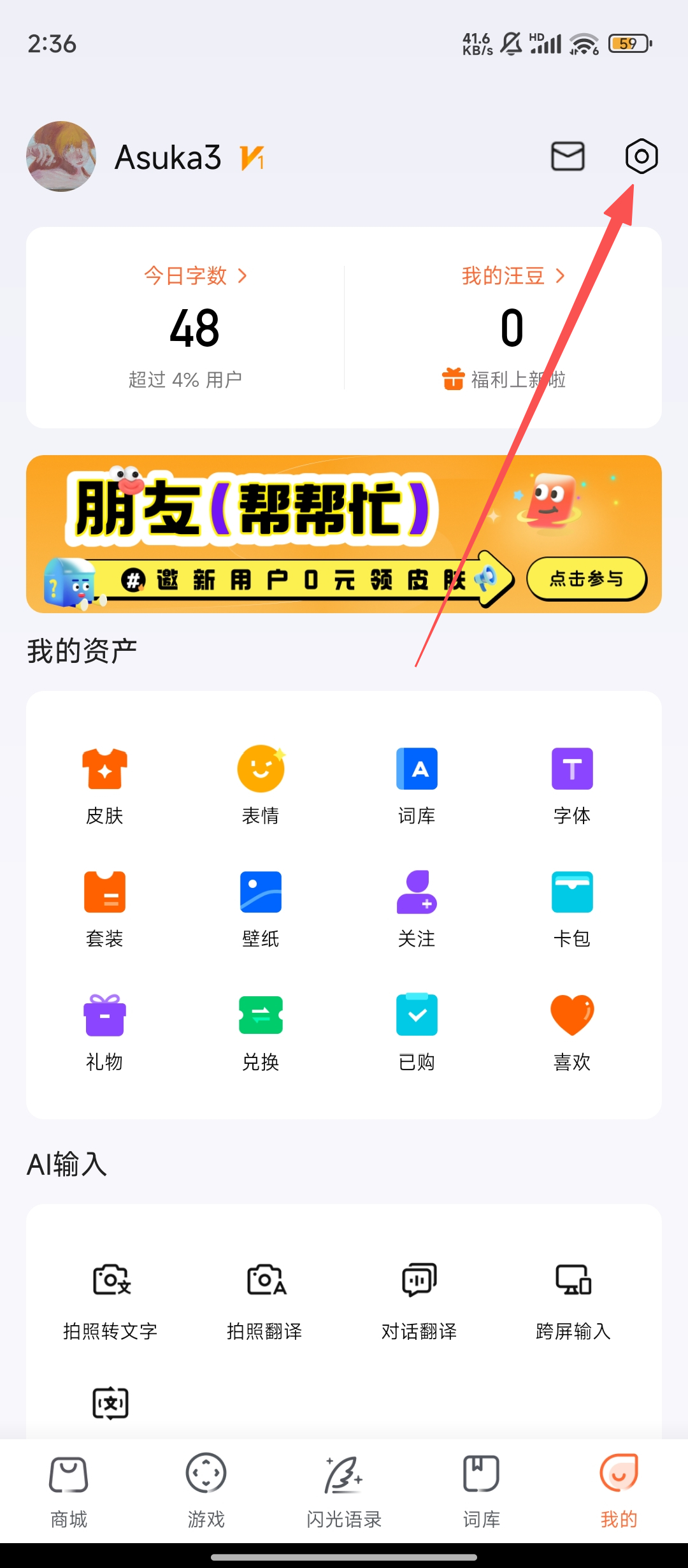 2、然后我们点击右上角的设置图标,进入设置界面,为后续调整语音设置做准备哦。