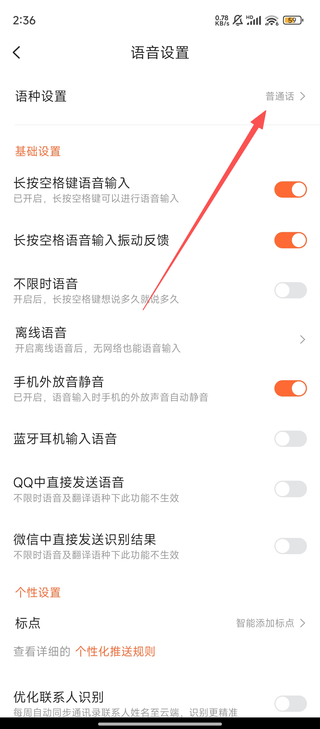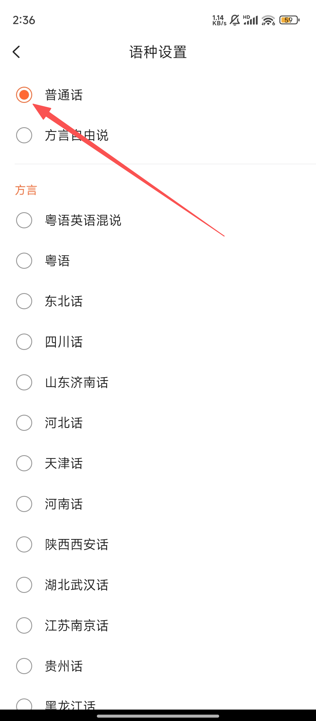 4、在【语种设置】页面,可以选择【普通话】,这样语音输入就会识别中文啦,很便捷呀。
