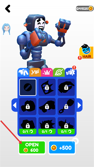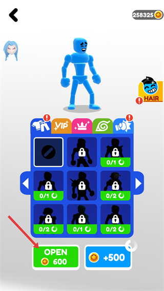 2、在皮肤界面,点击【OPEN-600】按钮,花费600金币开启皮肤宝箱。