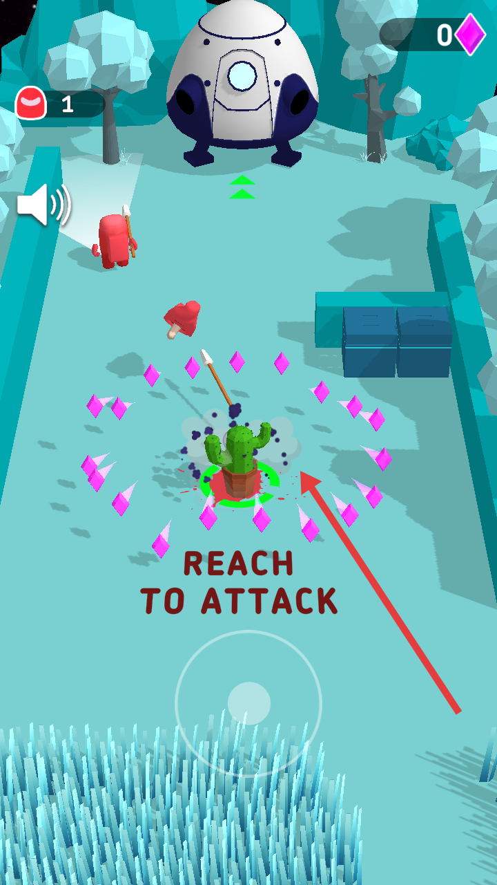 2、移动角色,躲避红色敌人的攻击,同时收集紫色钻石,积累资源。