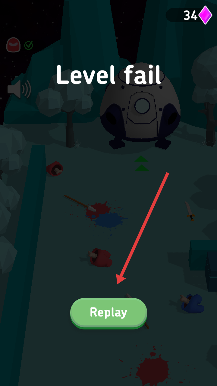 4、若关卡失败,点击Replay按钮重新开始挑战,调整移动和攻击时机以完成关卡目标。