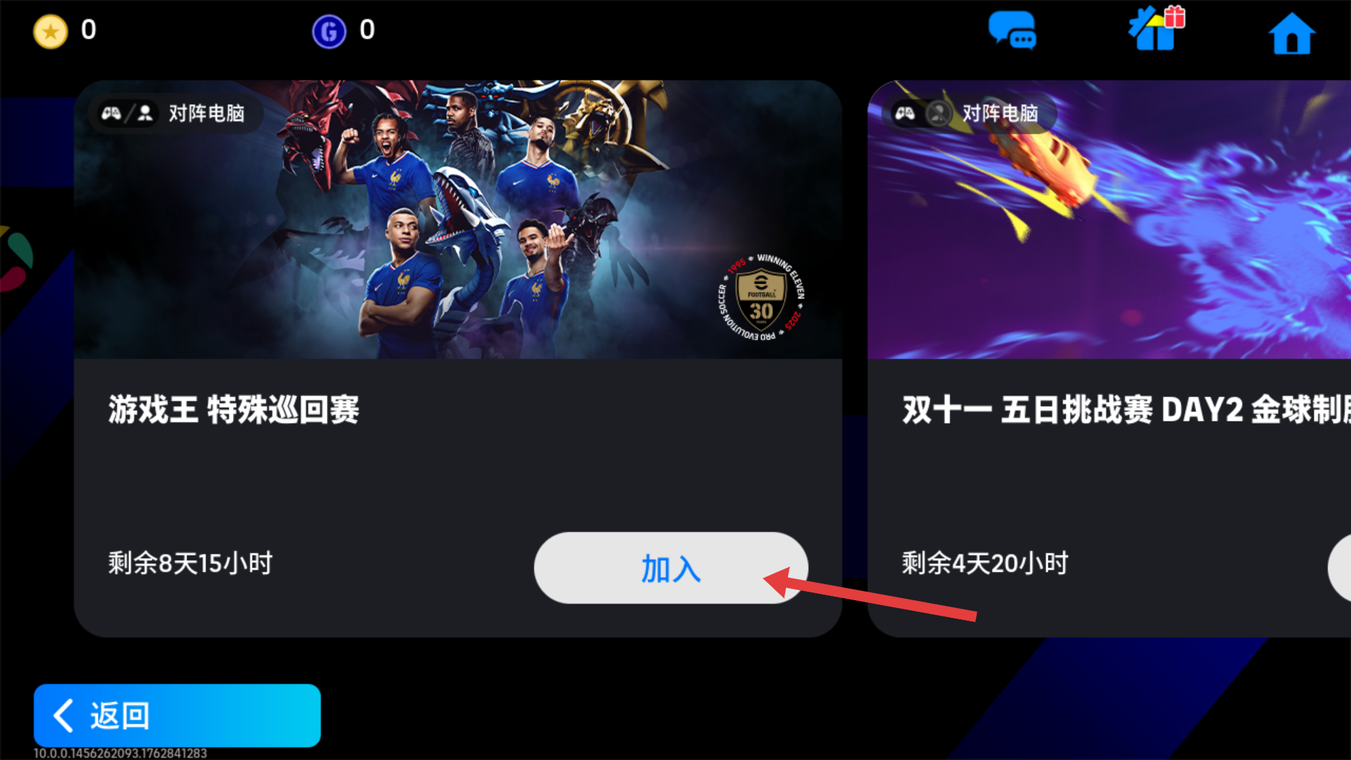 2、找到【游戏王-特殊巡回赛】活动,点击加入,在剩余时间内参与赛事,体验独特足球竞技玩法。