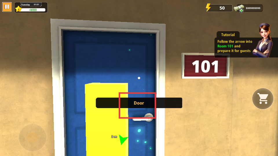 2、点击【DOOR】进入房间,按照提示准备房间,迎接客人。