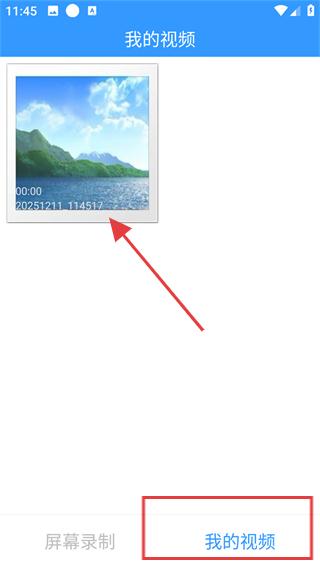 4、切换到【我的视频】页面,即可查看刚录制好的视频文件。