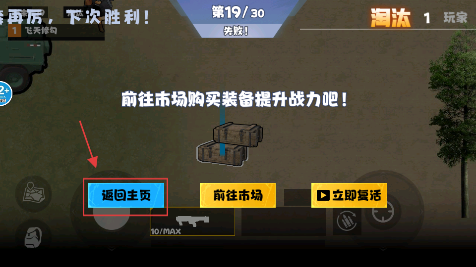 4、战斗失败后点击【返回主页】按钮,总结战斗经验后重新进入游戏,继续挑战以提升自身的战斗技巧。