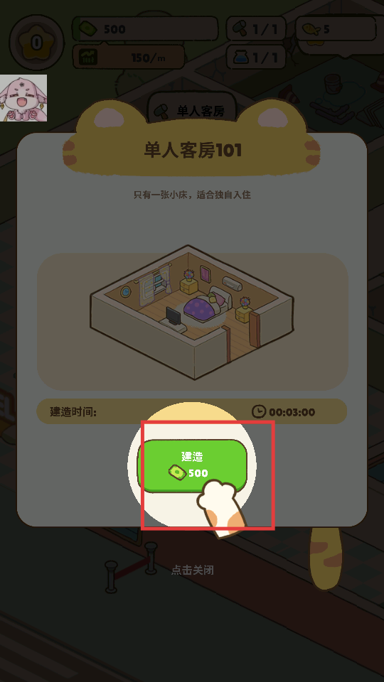 3、花费钞票建造单人客房101,为顾客提供住宿。