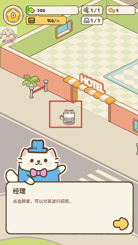 1、点击顾客,对其进行招揽,增加酒店客源。
