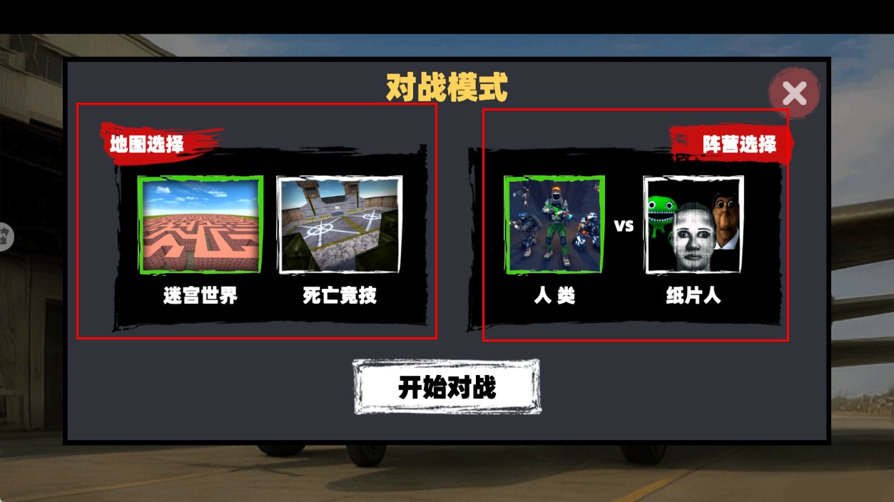 2、对战模式下先选【迷宫世界】地图,再择【人类】阵营,点击开始对战体验竞技乐趣。