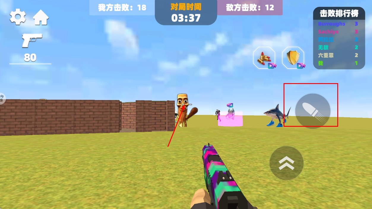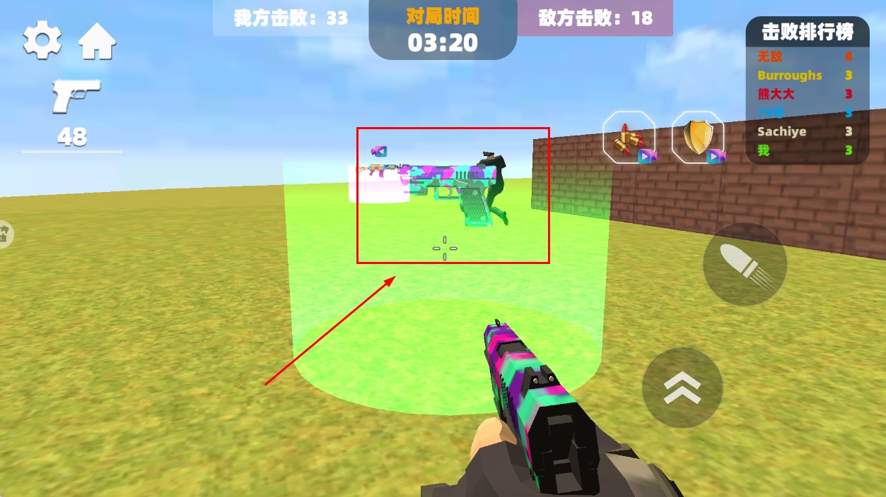3、战斗时利用墙体躲避攻击,瞄准敌人后点击【开火】图标释放子弹击败敌人。