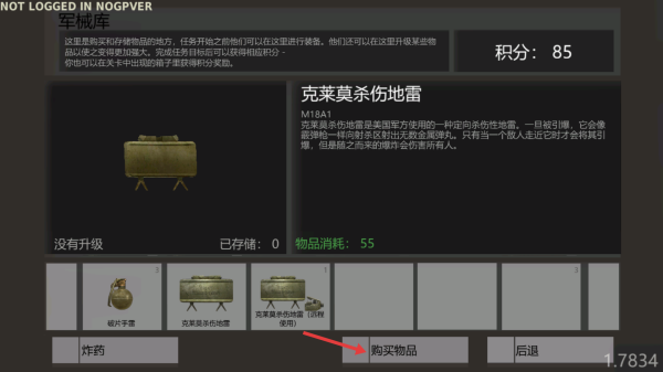 2、消耗55积分点击【购买物品】,获取克莱莫杀伤地雷,配备任务装备。