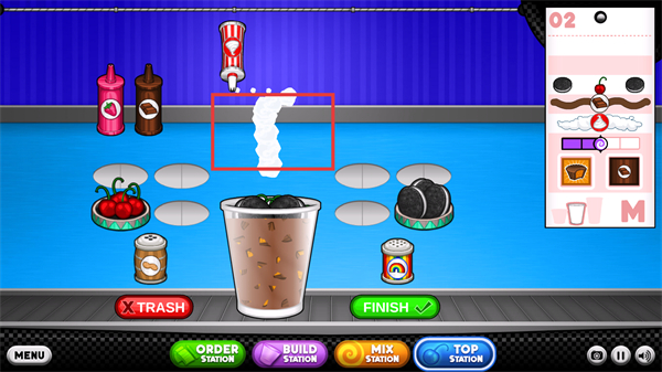 1、在【TOPSTATION】环节,根据订单图示添加酱料和装饰,确保添加的种类和位置准确。