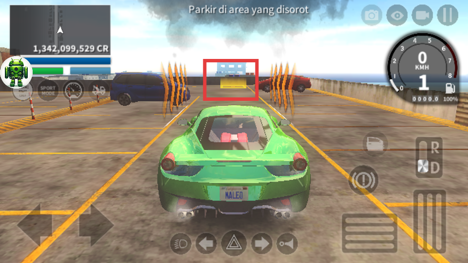 2、驾驶时,朝着红框内的高亮停车区域行驶,借助无限金币带来的车辆优势,更精准地操控车辆。