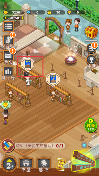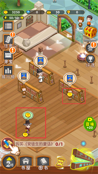 4、完成寻宝和图书管理后,可获得金币奖励,同时推进“购买《安徒生的童话》”等任务,完善书屋的图书品类,吸引更多顾客。