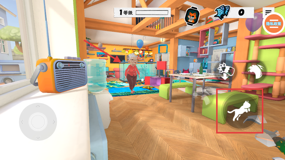 4、主人抓捕时点击跳跃按钮躲避,拉开距离后继续破坏物品完成关卡。