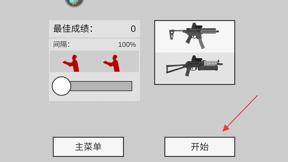 3、菜单页面调整僵尸间隔数、使用武器等,点击开始就能进入游戏。