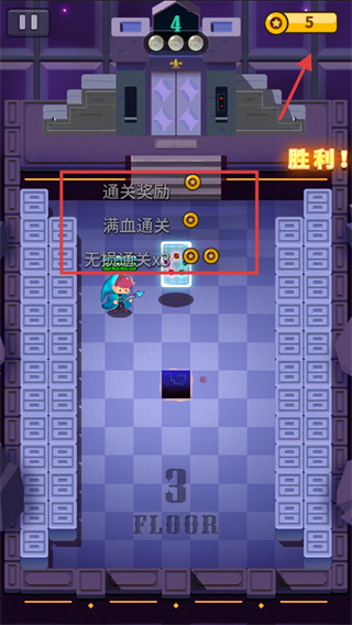 3、通关后可获得【通关奖励】【满血通关】【无损通关x3】及金币,尽量满血、无损通关,积累金币强化法术或购置装备。