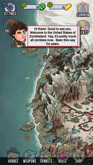 1、进入【UnitedStatesofZombieland】,跟随初始引导了解末日背景,开启废土生存挑战,组建小队应对丧尸威胁。
