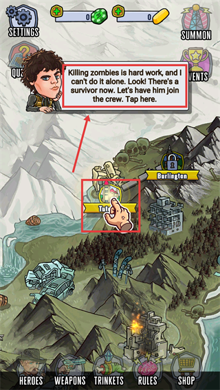 2、遇到幸存者时点击【Tut】标识区域,招募新成员加入队伍,壮大幸存者小队的实力,为后续战斗做准备。