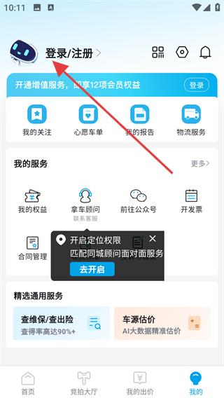 2、选择【登录/注册】入口,进入账号登录注册页面。