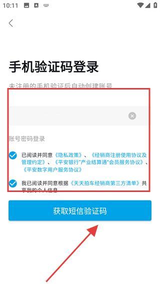3、在登录页选择【手机验证码登录】,勾选相关协议后,点击【获取短信验证码】。