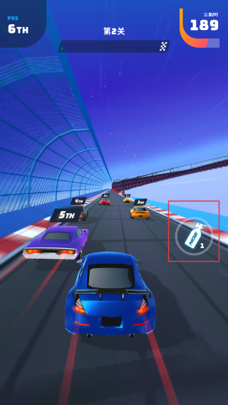 3、在关卡赛道中点击右侧氮气道具,助力赛车提升排名。