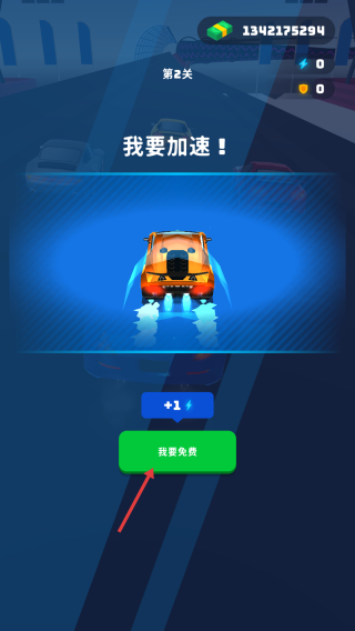 2、进入关卡前可点击【我要免费】,为车辆增加加速效果。