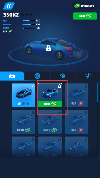 1、在车库界面消耗资源解锁车辆,获取新赛车。