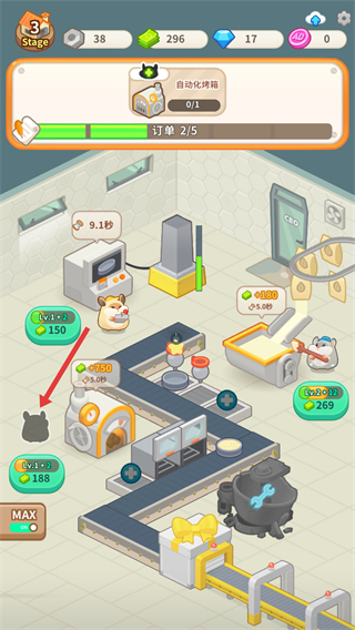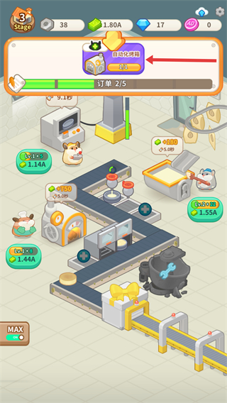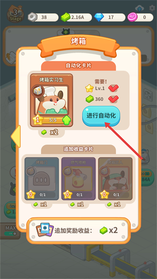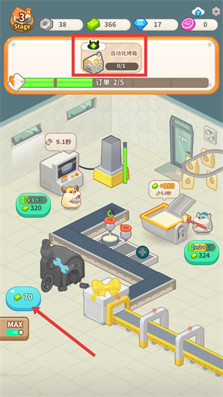 1、在工厂界面点击红框内的【自动化烤箱】选项,消耗资源解锁该工序的自动化配置。