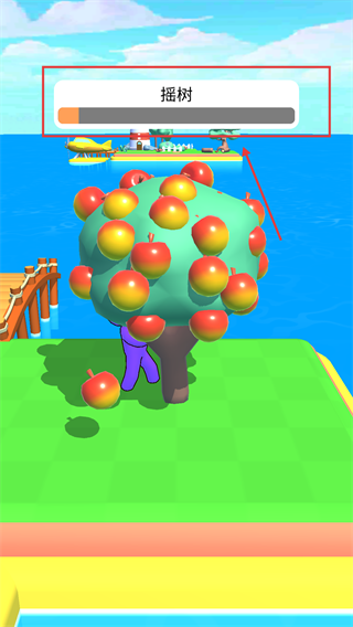 3、完成【摇树】进度条操作,快速获取大量苹果果实,有效提升农场作物的收获效率与资源积累速度。