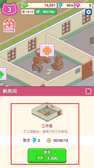 3、建造过程中会显示“建造中”的状态和剩余时间,等待建造完成后,新的工作室即可投入使用。