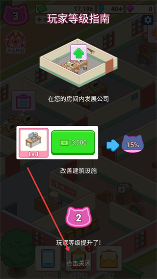 4、可改善建筑设施(如升级Lv1的设施,消耗3,000资金),提升建筑的收益和功能,同时推动玩家等级的提升。