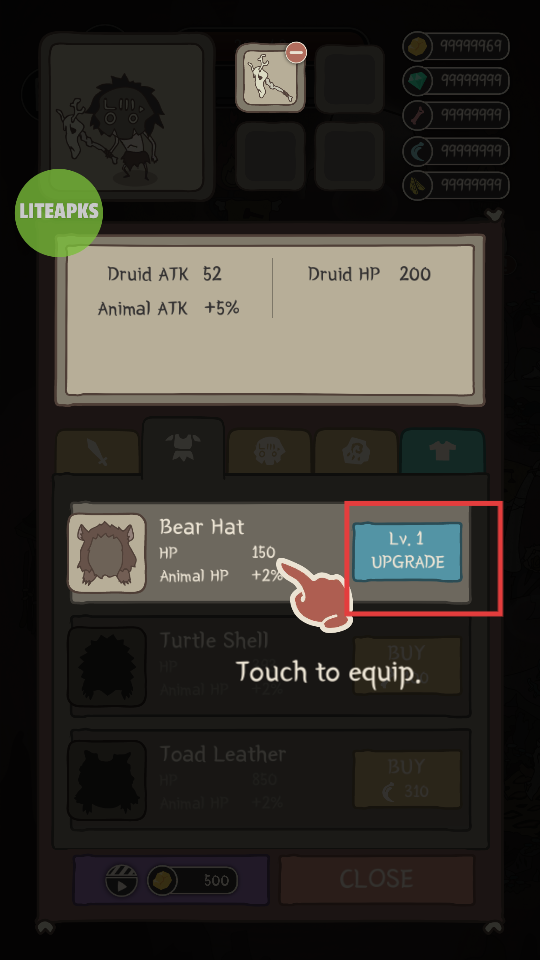 2、点击【UPGRADE】升级BearHat,提升HP和动物HP,增强角色生存能力。