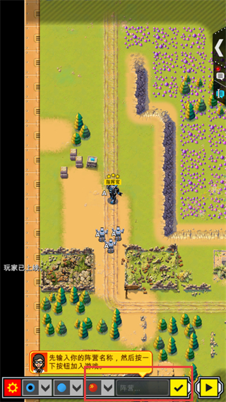 2、进入战场后,先输入阵营名称并确认,初始拥有1000资源,可在基地附近部署建筑,建立初期防御与资源生产体系。