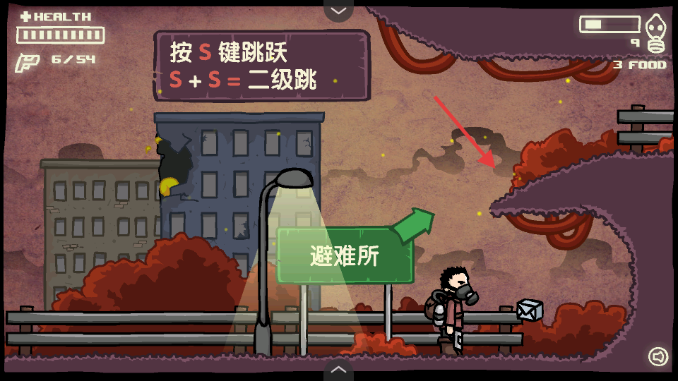 3、遇到地形障碍时,按S键跳跃,连续按两次S可触发二级跳,助力前往“避难所”位置。