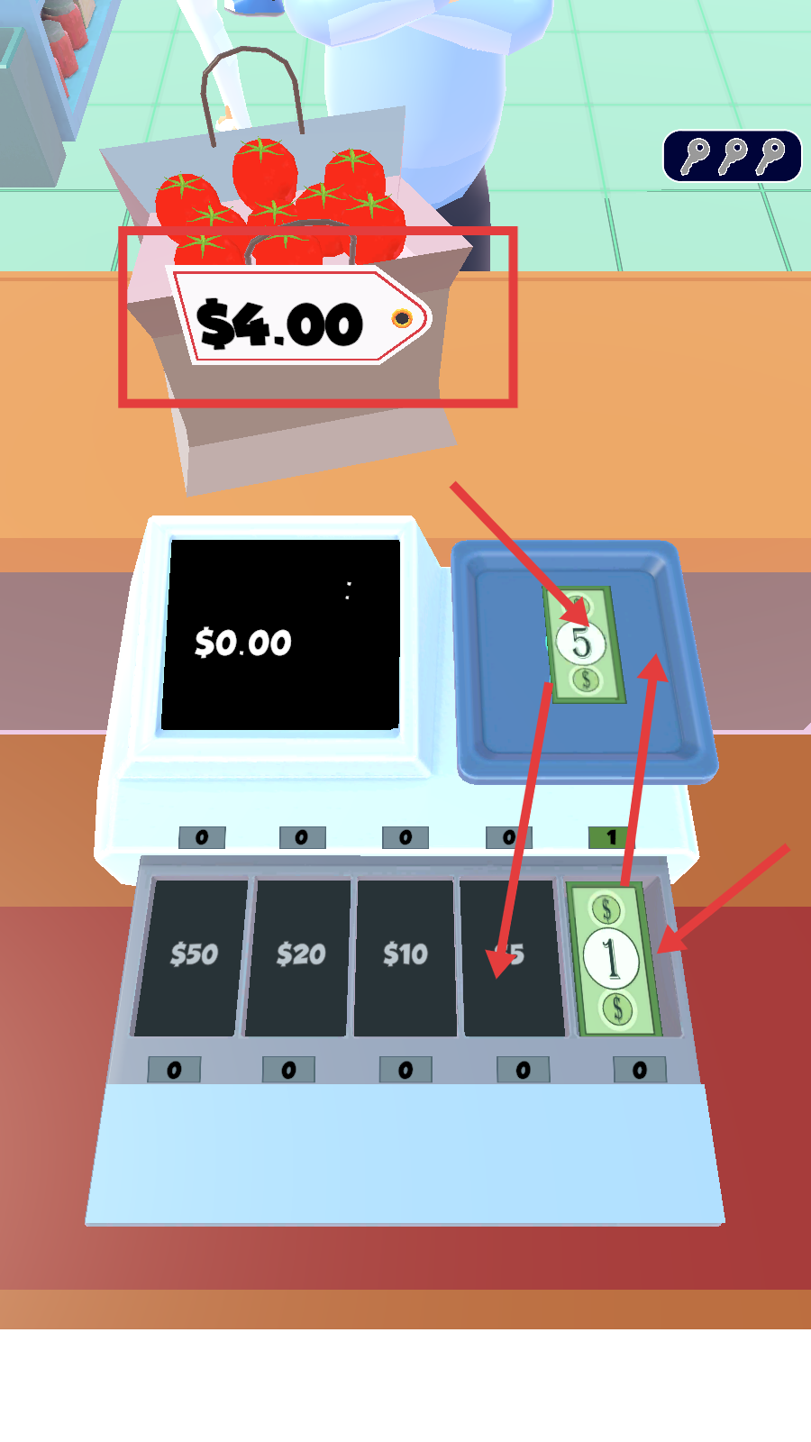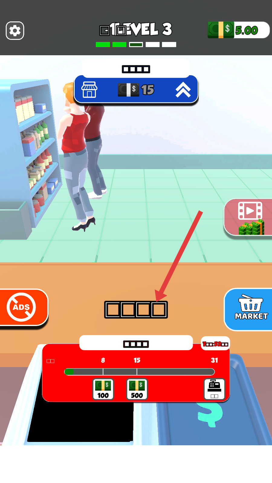 1、在【LEVEL3】中,注意下方的空格,点击准备进行收银操作。