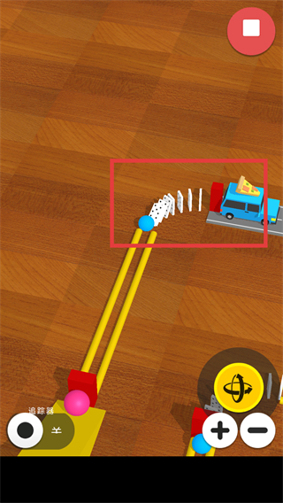 4、关注红框内的骨牌触发区域,配合下方操作按钮调整视角,确保骨牌按设计路径顺畅推进。