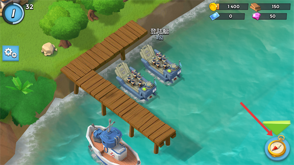 《海岛奇兵》从沙滩指定范围内登陆。然后在海面上有战舰提供导弹、医疗支援,同时还能释放引导弹进行实时打击目标指挥。至于坐着登陆艇成功冲上岸的士兵,全自动战斗,会优先攻击最近的建筑,这时就需要你引导他们集中火力,打掉敌方防御工事先。最后,只要摧毁敌人的司令部就能引爆敌人整个基地,获得胜利,拿到战利品。