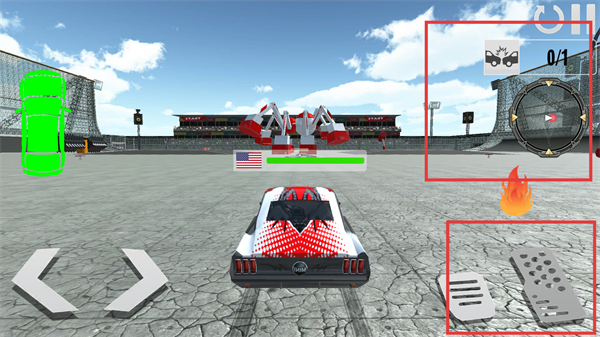 4、操作简易易上手,虚拟摇杆控制方向,按键触发加速等动作,新手快速掌握,专注享受破坏与特技的核心乐趣。