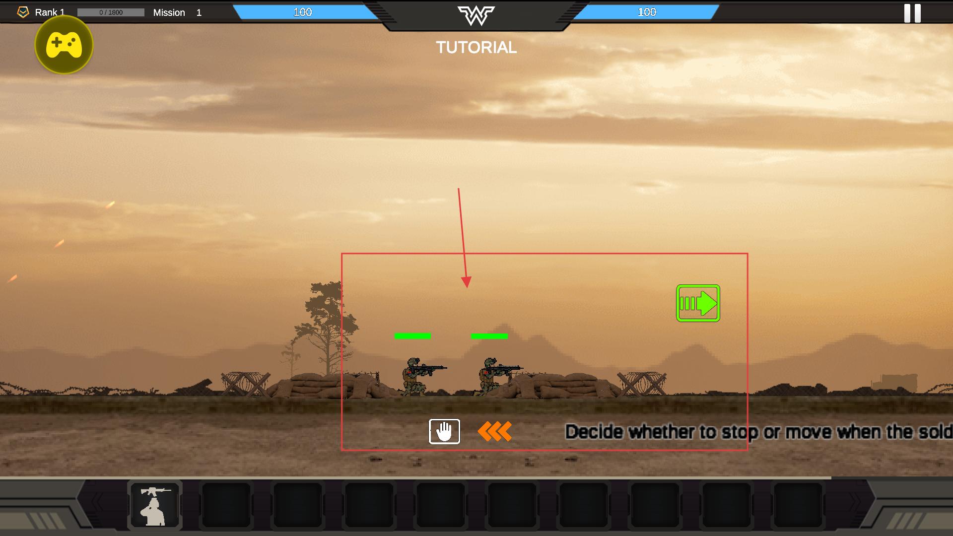 2、战斗中根据提示选择士兵的行动状态(停留/移动),通过调整部署位置提升己方部队的作战效率,应对敌方火力。