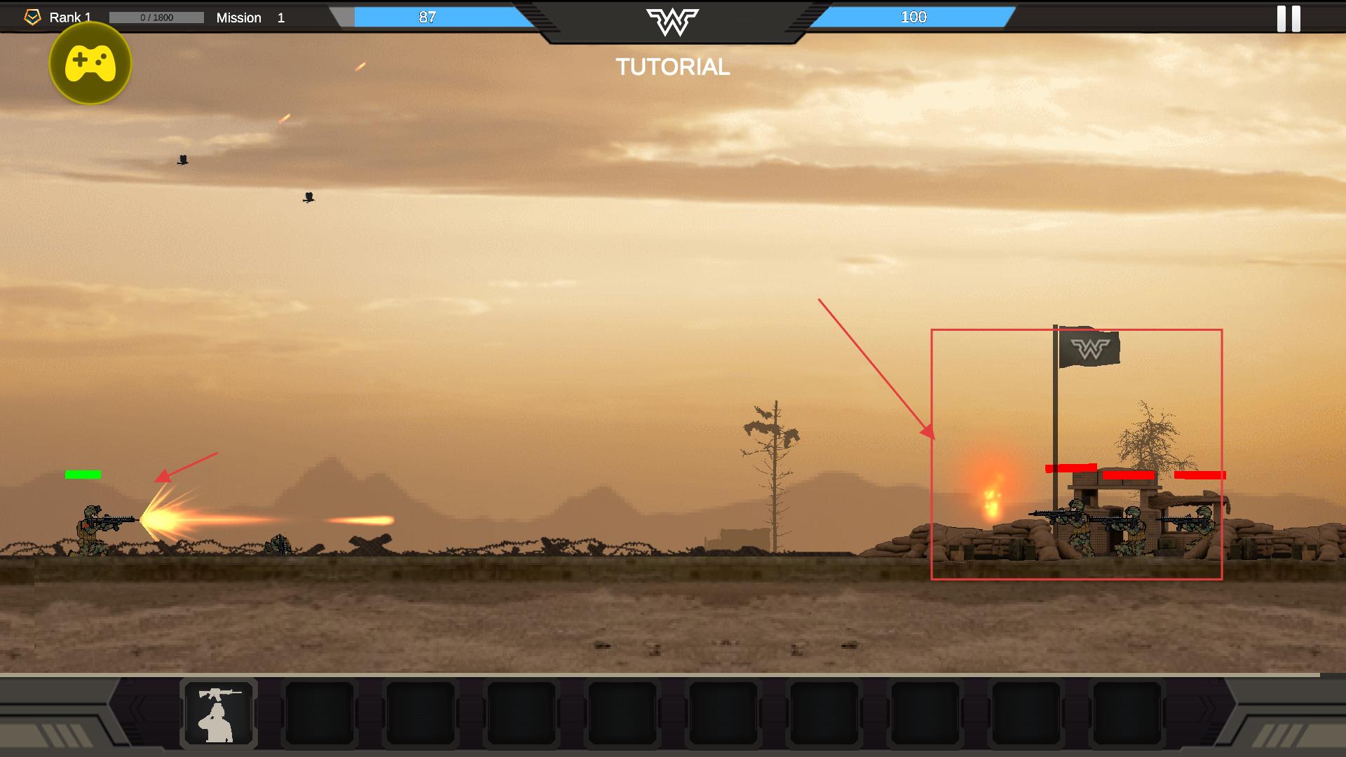 3、聚焦敌方据点(带有旗帜标识),集中己方火力攻击该区域的敌方单位,逐步削减敌方兵力以推进战线。
