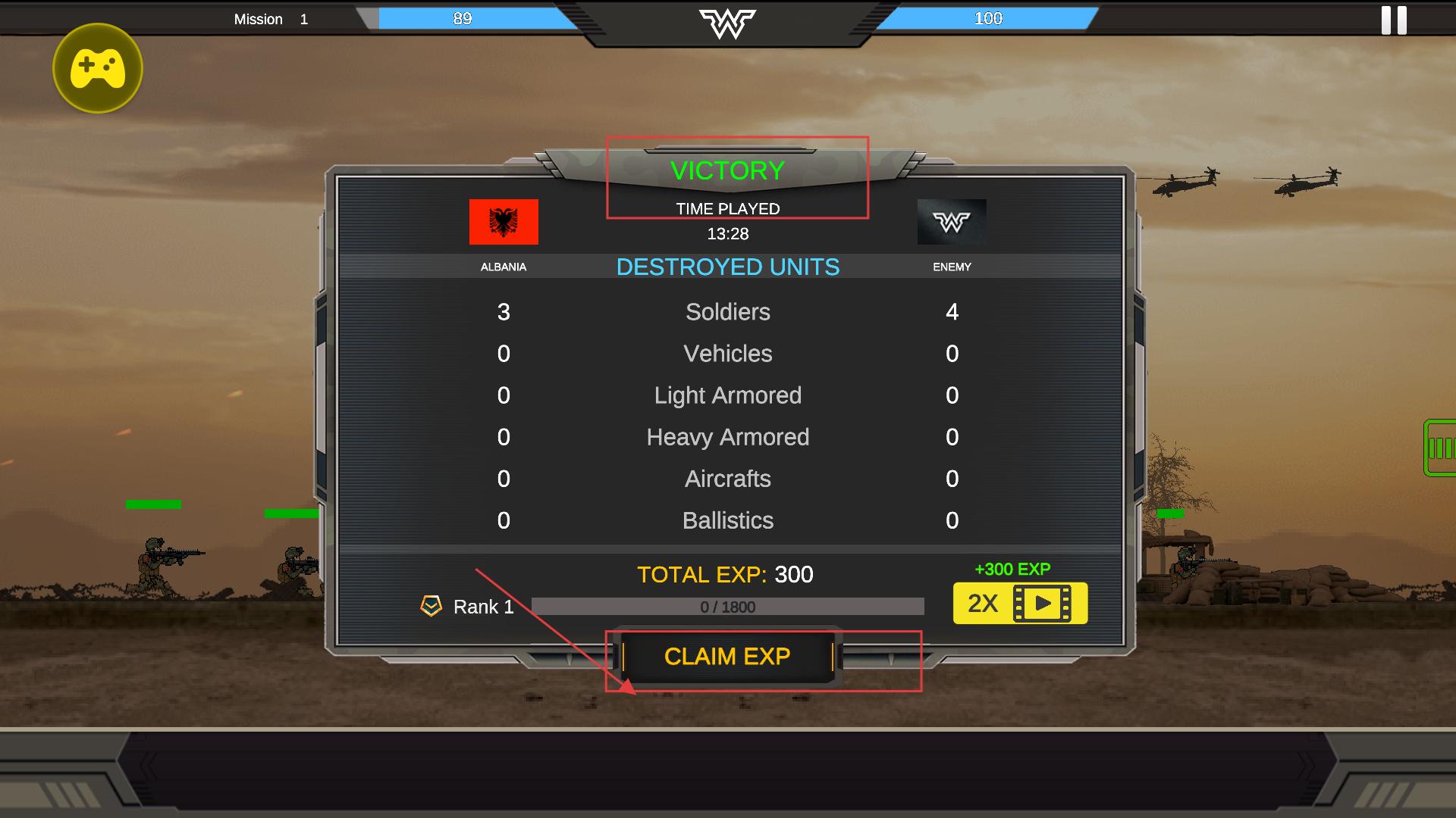 4、任务胜利后,点击【CLAIM-EXP】领取【300】经验奖励,也可观看广告获取双倍奖励,提升等级进度。