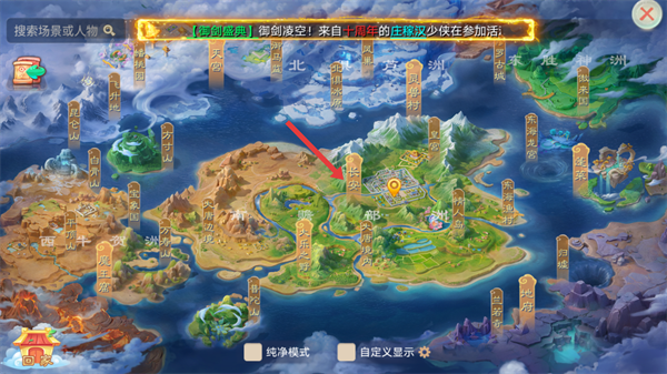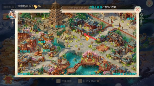 1、在世界地图中选择长安,前往该场景。