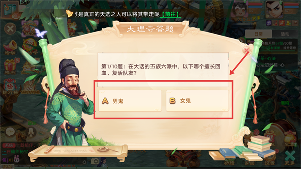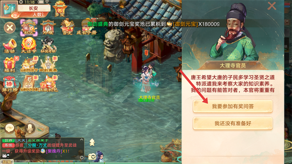 3、与大理寺官员对话,选择【我要参加有奖问答】,进入答题界面。