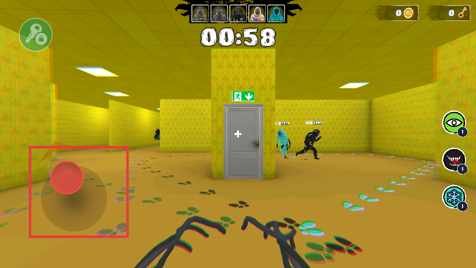 3、通过左侧移动控制,在场景中移动,寻找玩家,推进关卡进程。