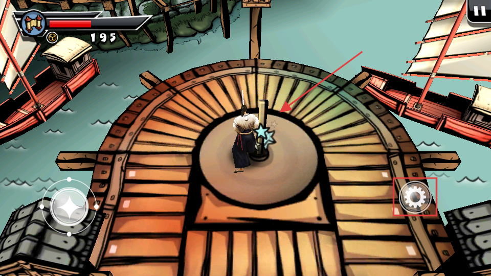 1、进入游戏初始场景后,可通过界面右侧的【齿轮】图标调整设置,跟随场景中的指引标记开启武士的冒险之旅。