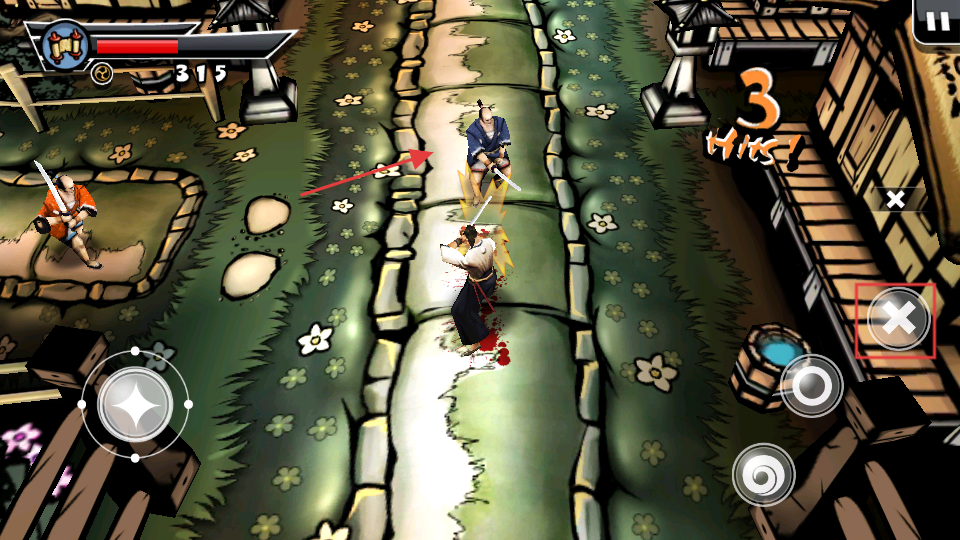3、面对多名敌人时,利用右侧圆形攻击按钮快速连击,积累连击数触发【OO】标记的特殊技能高效斩杀敌人。