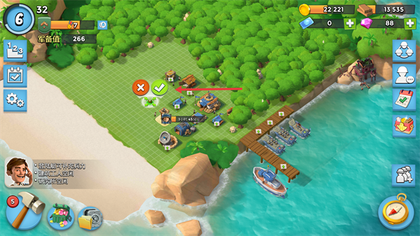 玩家在海岛上建造自己的民房、兵营、炮塔、采石场、木材场等建筑设施,并为这些设施装备机枪、大炮、火箭发射器等武器装备,足以让玩家正真的创造属于自己的海岛世界。训练士兵、建造舰艇发动战争让大家时刻体验惊险刺激的战争世界。玩家在游戏中需要由浅入深,由简单到复杂,逐步建立起自己的强大部队,还要精心策划排兵布阵,才能取得一场接一场海岛争夺战的胜利。