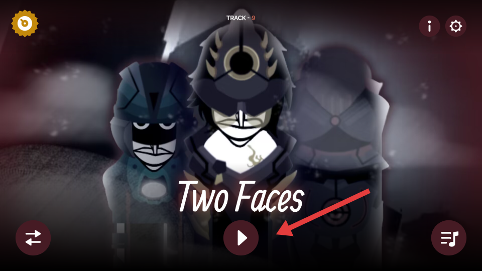 1、看到带有【Two-Faces】字样的界面,点击中间红色播放按钮,即可进入游戏。