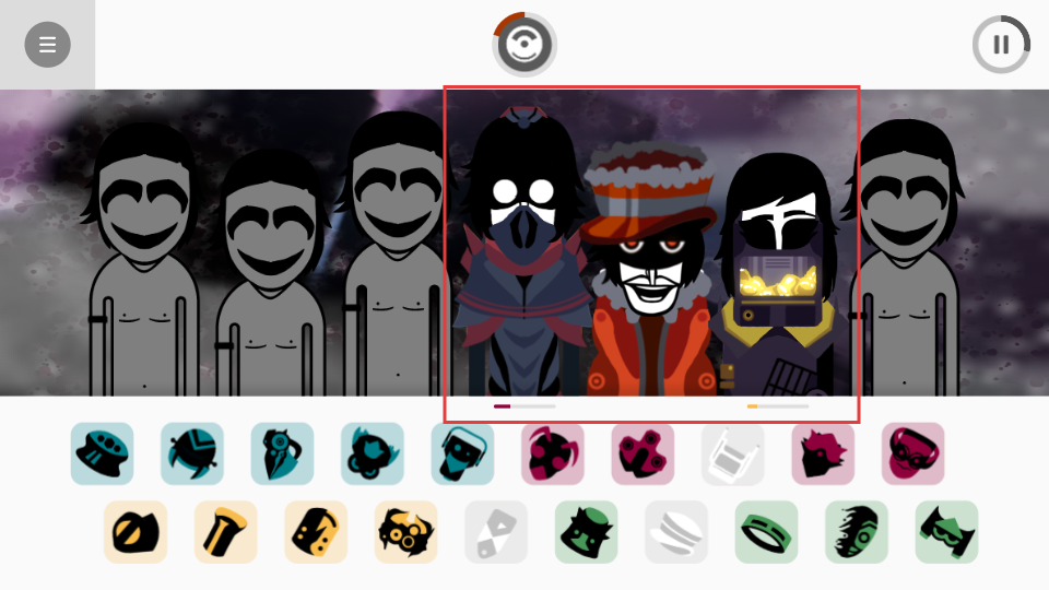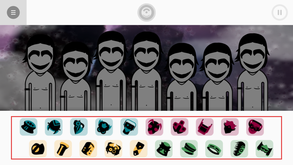 4、利用剩余配饰图标,依次为其他角色搭配,让所有角色都拥有专属装扮,如机械风头盔、金色面具等造型,丰富整体视觉效果并创作音乐。